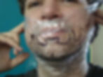 Hold the cellophane over the area to be traced, and cover that area with 2 layers of transparent tape. Trace the area of natural growth. Mark where the centre of the chin is, as well as the jaw line. Don't worry if your tracing on both sides isn't perfectly symmetrical, just mark with a checkmark which side of the tracing (left or right) you feel is more accurate. Take reference photograph of the cello tracing while it is still on the actor.