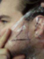 Hold the cellophane over the area to be traced, and cover that area with 2 layers of transparent tape. Trace the area of natural growth. Only one side of the face needs to be measured. Take reference photograph of the cello tracing while it is still on the actor.